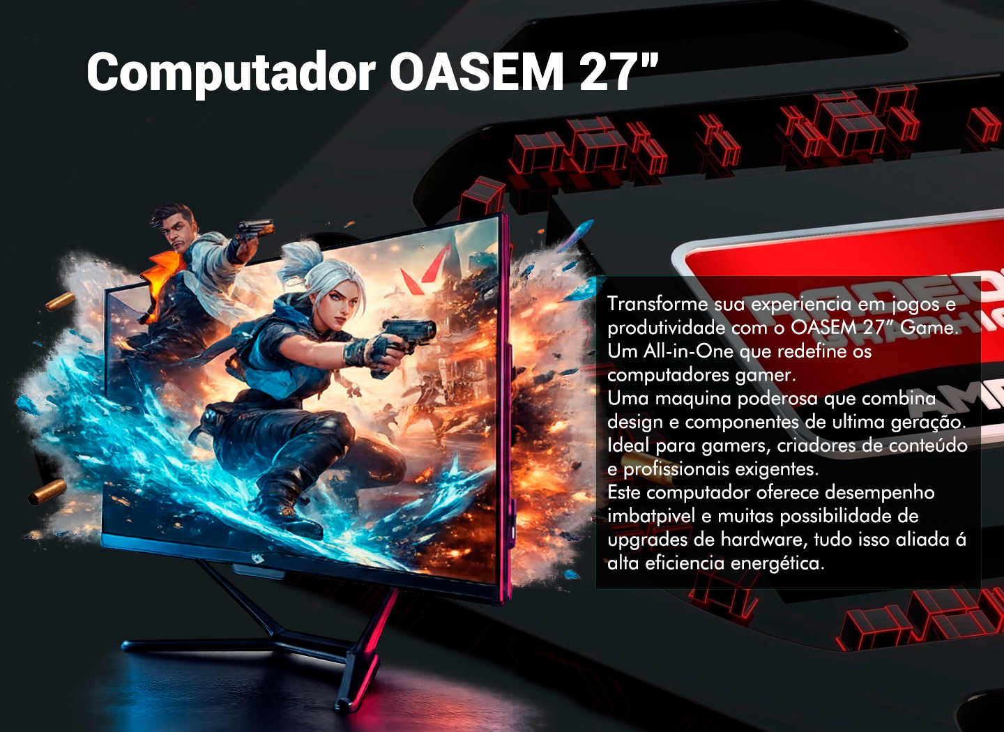 Experimente o equilíbrio perfeito entre desempenho, design e possibilidades de upgrade. OASEM 27" All-in-One Gamer: feito para você transformar seu futuro!