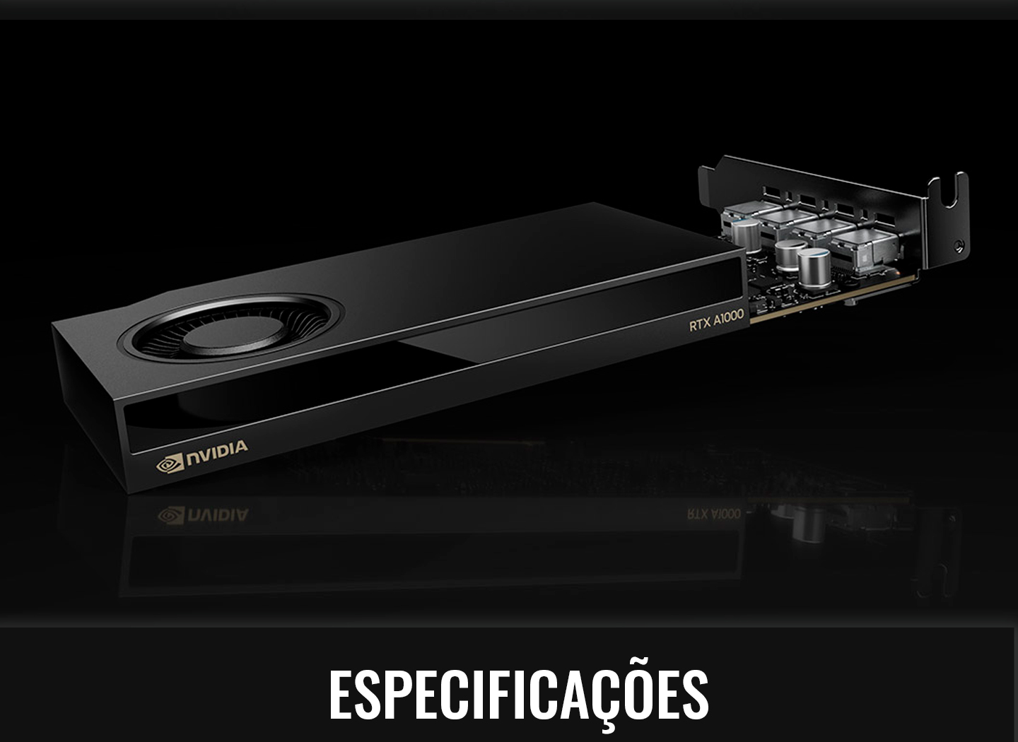 A placa gráfica Quadro RTX™ A1000 oferece capacidade para modelagem 3D, renderização avançada e workflows otimizados por IA.