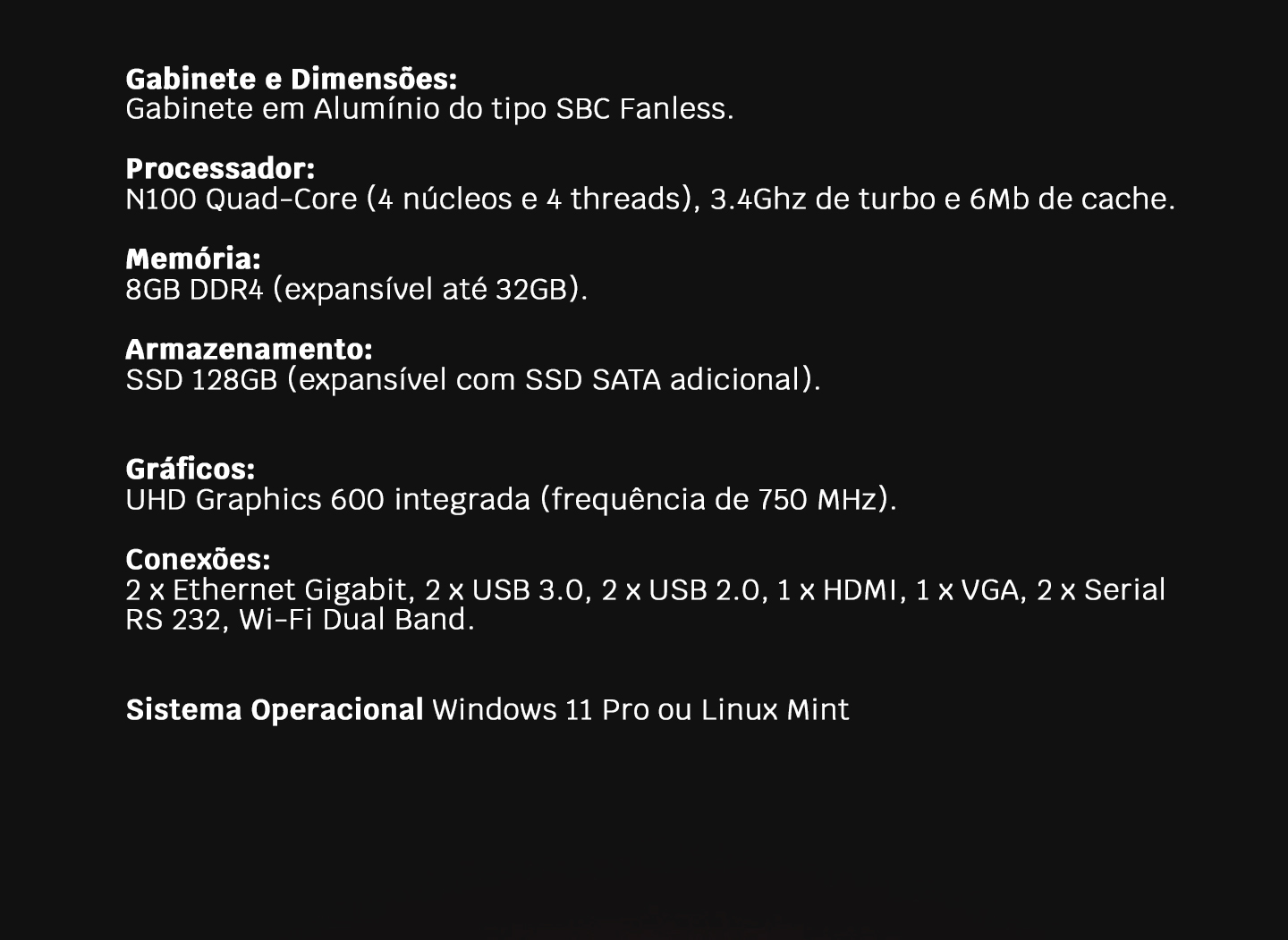 O LITTLE N100 é um mini PC industrial de última geração, projetado para oferecer máximo desempenho com baixo consumo de energia em ambientes exigentes.