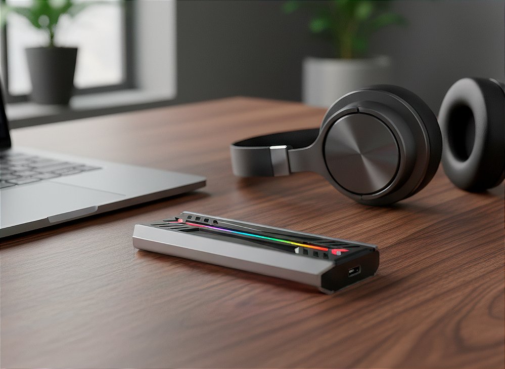 Durabilidade e Estilo: Case de alumínio protege o dispositivo e conta com design moderno com efeitos RGB.